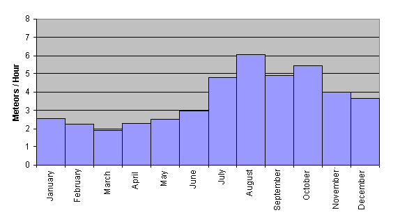shorter nights. Fewer than 700 meteors were recorded in Summer 2000 for the