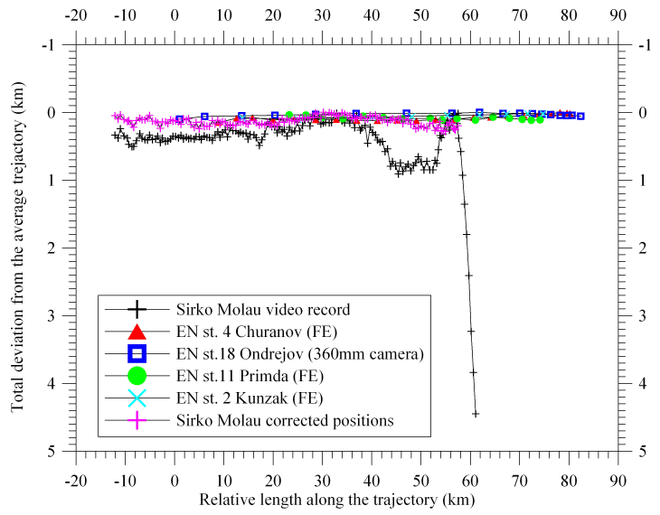 Results of the IMO Video Meteor Network - September 2006 ======================================================== Describing the observing results of September I'm running out of superlatives. We experienced already a number of successful months in the history of the camera network, but the last one outshined everything we had before. Let's start with the observers. In September 2006, 14 observers operated 19 video cameras. Beware that the data of Times5, Times6 (BENOR) and Remo1 (MOLSI) are not yet gathered. Thanks to the perfect weather in central Europe, up to 14 cameras were active in the same night, and there are two nights were we could collect more than 100 hours of effective observing time. Six observers managed to observe in 20 or more nights! Last October I thought that the fresh record of 1500 hours of observing time would be hard to beat. Well, the available data set from last month sums up to more than 1750 hours, and together with the three missing cameras it could be up to almost 2000. That would be twice as much as in the whole first year of the camera network. The meteor number was 50% higher than in the best September so far. To keep the long story short: The golden September 2006 was very favourable to the video observers, who did not let the chance slip. What else to report? Bob Lunsford demonstrated how far a good observing site can influence the outcome when operating an image-intensified camera. On September 1 he observed from a really dark site at Mt. Laguna. Within 3.5 hours he managed to record a blazing 150 meteors. I checked the observation - they are all real. :-) In the remaining part of the month he observed from his primary, more light polluted site. There he recorded well below half the number of meteors in more than 8 hours. As mentioned in the last report, together with Pavel Spurny from Ondrejov Observatory I could do some detailed analysis of the accuracy of wide angle video recordings (Mintron camera with 6mm f/0.8 lens) based on a fireball record from August 15. The first results were disastrous. A closer inspection revealed three errors: - The automatically measured positions had a fixed offset, since the camera was not perfectly fixed. It had shifted by 1/2 deg since the last measurement of reference stars. - At the time of maximum meteor brightness, the were huge position errors since not the center of the fireball shutter break was measured, but the leading point of the meteor along the trail. - At the end the fireball moved outside the field of view, but MetRec still detected the persistent train for a short time. In this part of the trajectory, the error naturally increased incrementally. After the shutter break positions of the video record were manually corrected, the result was much better.A detailed analysis yielded the following results: - The deviation of individual video meteor positions from the average trajectory computed from all photographic records was about 120 m. It was by a factor of five larger than the scatter of the photographic measurements. This comes as no surprise, since the resolution of the video camera was 9' per pixel, compared to 1/2' resolution of the photographic fisheye cameras. - Due to the higher sensitivity, the video camera detected the fireball more than one second earlier, which in this case translates to an altitude difference of 6 km (80 vs. 74 km). - The photographic brightness was several magnitudes brighter than the one determined by MetRec (-8 vs. -4 mag). It has to be remembered, though, that there are no reference stars in the given magnitude range such that the video brightness needed to be extrapolated over several magnitudes. - Even though the image of bright objects is heavily distorted (coma) when using asperical Computar lenses, the position is still quite accurate when estimating the center of the shutter breaks. The deviation of the video data from the photographic trajectory increased only little at the time of maximum brightness. - The velocity determined from the video recording showed a much larger scatter from frame to frame than the photographic measurements. It can be concluded, that wide-angle video data are less accurate than the fisheye cameras from the EN due to the lower resolution, but they can still be used for trajectory determination. It is vital to work accurately and rule out systematic errors. The mentioned deviation by 1/2 degree shifted the trajectory systematically by a few hundred meters. An addition, video position measurements of bright fireball need to be verified and corrected manually. 1. Observers ============ Code Name Place Camera FOV LM Nights Time Meteors -------------------------------------------------------------------------------- CASFL Castellani Monte Baldo BMH1 (0.8/6) 55 dg 3 mag 15 98.1 h 262 ELTMA Eltri Venezia MET38 (0.8/3.8) 80 dg 3 mag 4 35.6 h 143 EVAST Evans Moreton RF1 (0.8/12) 25 dg 5 mag 10 69.3 h 262 HINWO Hinz Brannenburg AKM2 (0.85/25) 32 dg 5 mag 13 97.4 h 672 KACJA Kac Kostanjevec METKA (0.8/8) 42 dg 2 mag 23 112.7 h 200 Kamnik REZIKA (0.8/6) 55 dg 3 mag 18 109.3 h 471 KOSDE Koschny Noordwijkerh. ICC3 (0.85/25) 25 dg 5 mag 1 5.7 h 52 LUNRO Lunsford Chula Vista BOCAM (1.4/50) 60 dg 6 mag 21 119.3 h 855 MOLSI Molau Seysdorf AVIS2 (1.4/50) 60 dg 6 mag 18 92.1 h 1558 MINCAM1 (0.8/6) 55 dg 3 mag 27 159.9 h 513 SLAST Slavec Ljubljana KAYAK1 (1.8/28) 50 dg 4 mag 20 94.4 h 172 SPEUL Sperberg Salzwedel AKM1 (0.85/2) 32 dg 5 mag 3 22.3 h 61 STOEN Stomeo Scorze MIN38 (0.8/3.8) 80 dg 3 mag 8 54.6 h 163 STRJO Strunk Leopoldshoehe MINCAM2 (0.8/6) 55 dg 3 mag 27 161.8 h 396 MINCAM3 (0.8/8) 42 dg 4 mag 17 129.8 h 438 MINCAM4 (1.4/2) 180 dg 0 mag 5 45.9 h 25 MINCAM5 (0.8/6) 55 dg 3 mag 13 99.5 h 527 TRIMI Triglav Velenje SRAKA (0.8/6) 55 dg 3 mag 26 134.8 h 429 YRJIL Yrjola Kuusankoski FINEXCAM (0.8/6) 55 dg 3 mag 19 111.8 h 672 -------------------------------------------------------------------------------- Sum 30 1754.3 h 7871 2. Observing Times (h) ==