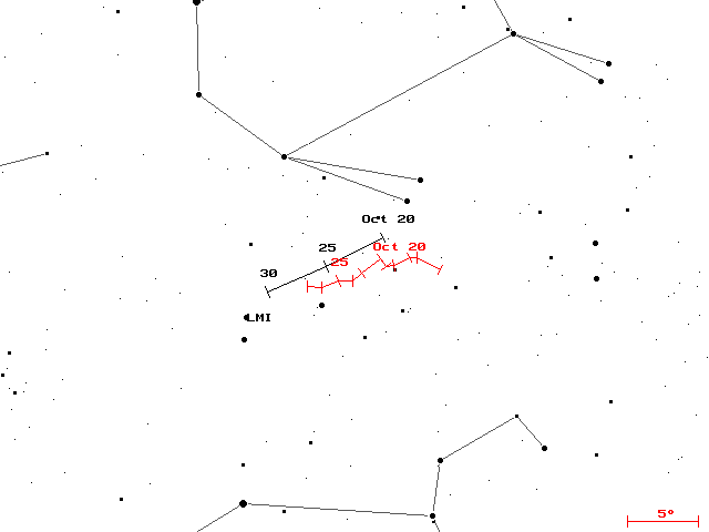 Figure 7: Radiant position of the Leo-Minorids from data of the IMO Video Meteor Database. The activity profile of the shower (figure 8) is well-shaped. The maximum occurs on October 23/24. The peak activity is comparable to the northern Taurids and should therefor be of the order of ZHR=4 and not ZHR=2 as presented in the IMO handbook.